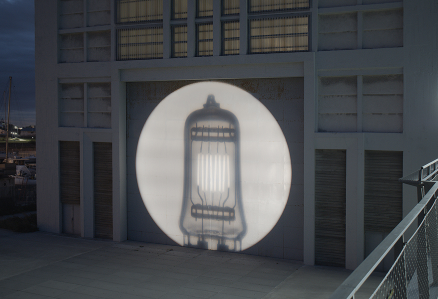 série des autoprojections - version chromosomes - collection Frac Grand Large - Hauts de France // lampe halogène de 650 w – projecteur de théâtre modifié – extinction d'éclairage public devant le bâtiment / dimensions variables
