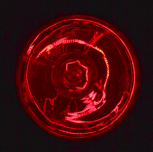 Dans le cas de cette création à Croix-Baragnon pour le tandem avec Julio le Parc, le choix fût porté sur des lampes infra-rouges, qui dégageaient de la chaleur à une distance proche et produisaient du son par résonance de leurs filaments à faible intensité. L’œuvre projetait sur le mur face à elle, les images cinématiques des ombres de l’escalier et des personnes entrant dans son champs, dans un mouvement perpétuel ( cf vidéo ).