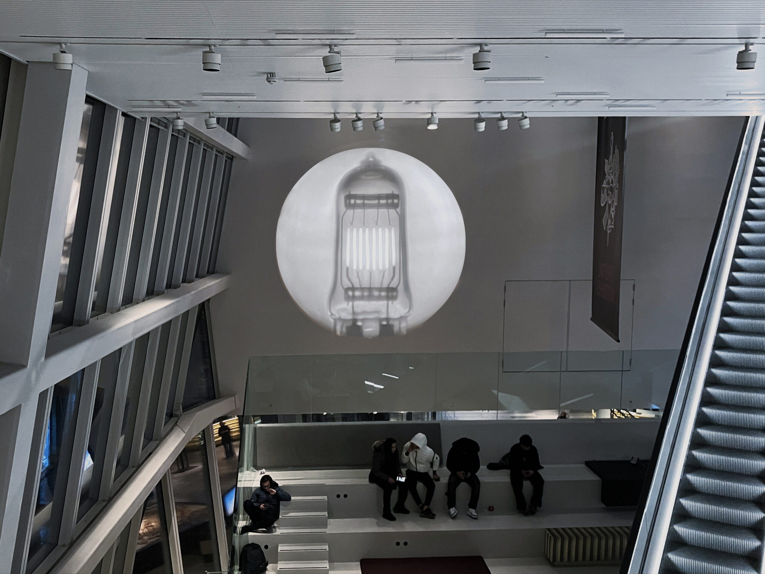 série des autoportraits - version chromosomes /// Festival Let's Gro - Forum de Groningue - Hollande - 2025 // lampe halogène de 650 w – projecteur de théâtre modifié – extinction d'éclairages dans le bâtiment / dimensions variables