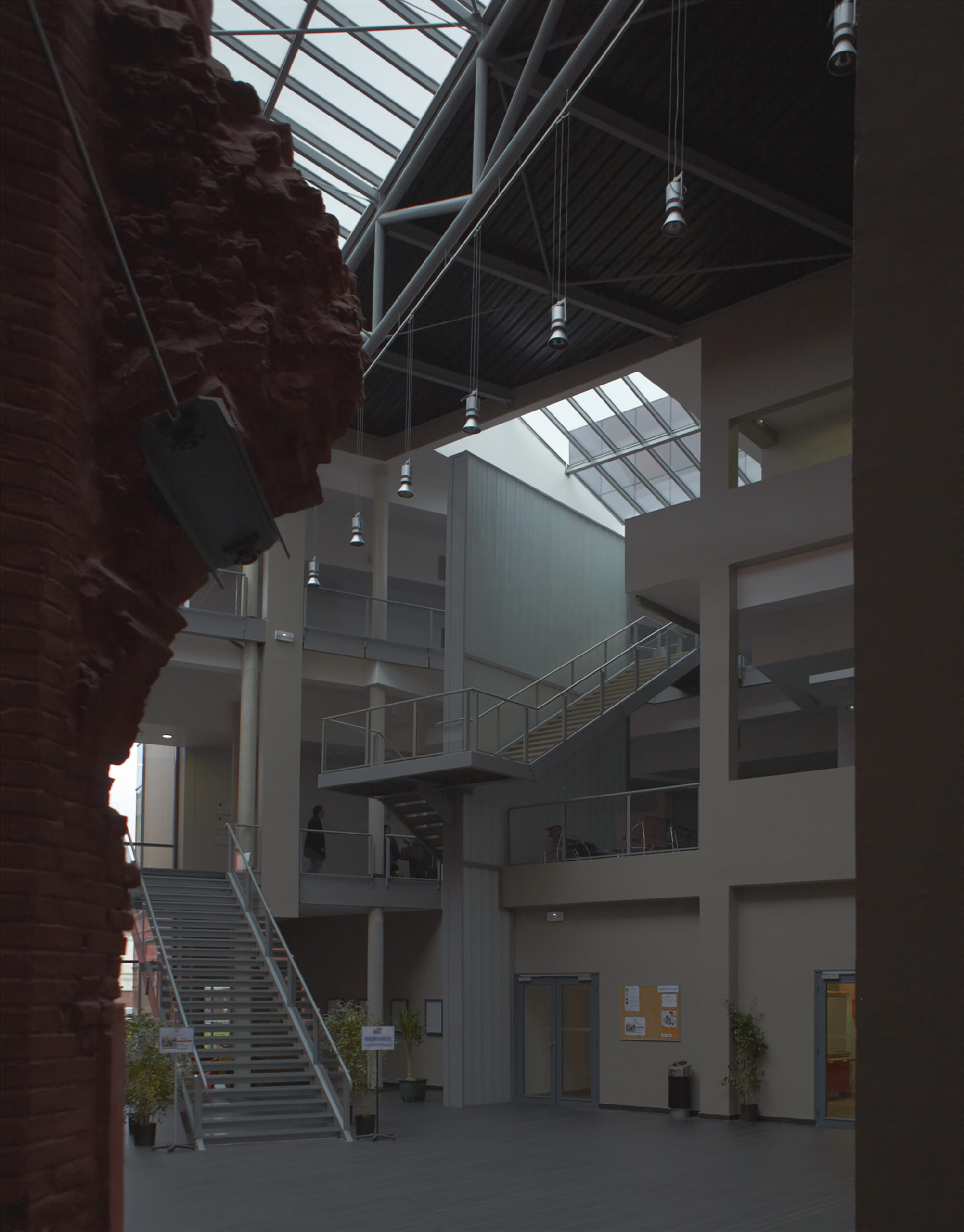 Mur de pv a été créée non seulement pour compenser énergiquement fading jenny 0 à 100, mais aussi pour pallier une erreur de plan de toiture et ainsi masquer, tel un paravent, un ensemble de machineries de ventilation qui étaient visibles involontairement depuis l’atrium.